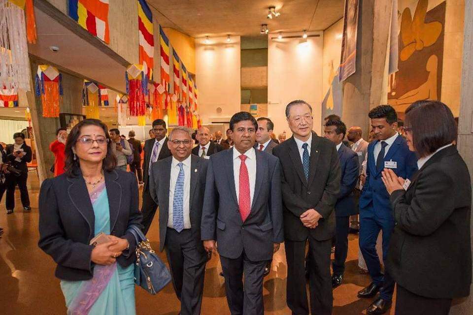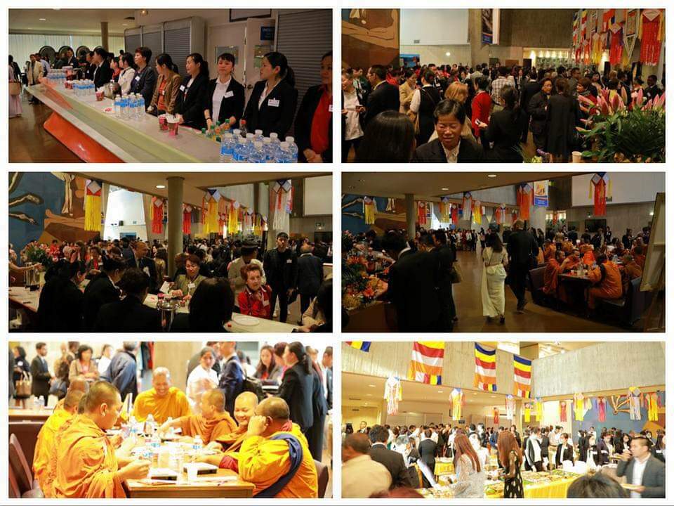 这个节日里来自八十七个国家的佛教界人士,而且都是高僧大德,他们都是……还有僧王、教主,联合国的很多官员,当地的每一个宗教教派的教主都有,到处都是僧人,坐得满满都是。台长跟他们一起,坐在第一排里边合影,因为台长是特别邀请的,所以待遇很高,我特别高兴(我梦到台长跟我通电话,说得特别开心、法喜)开会的时候也是坐在第一排